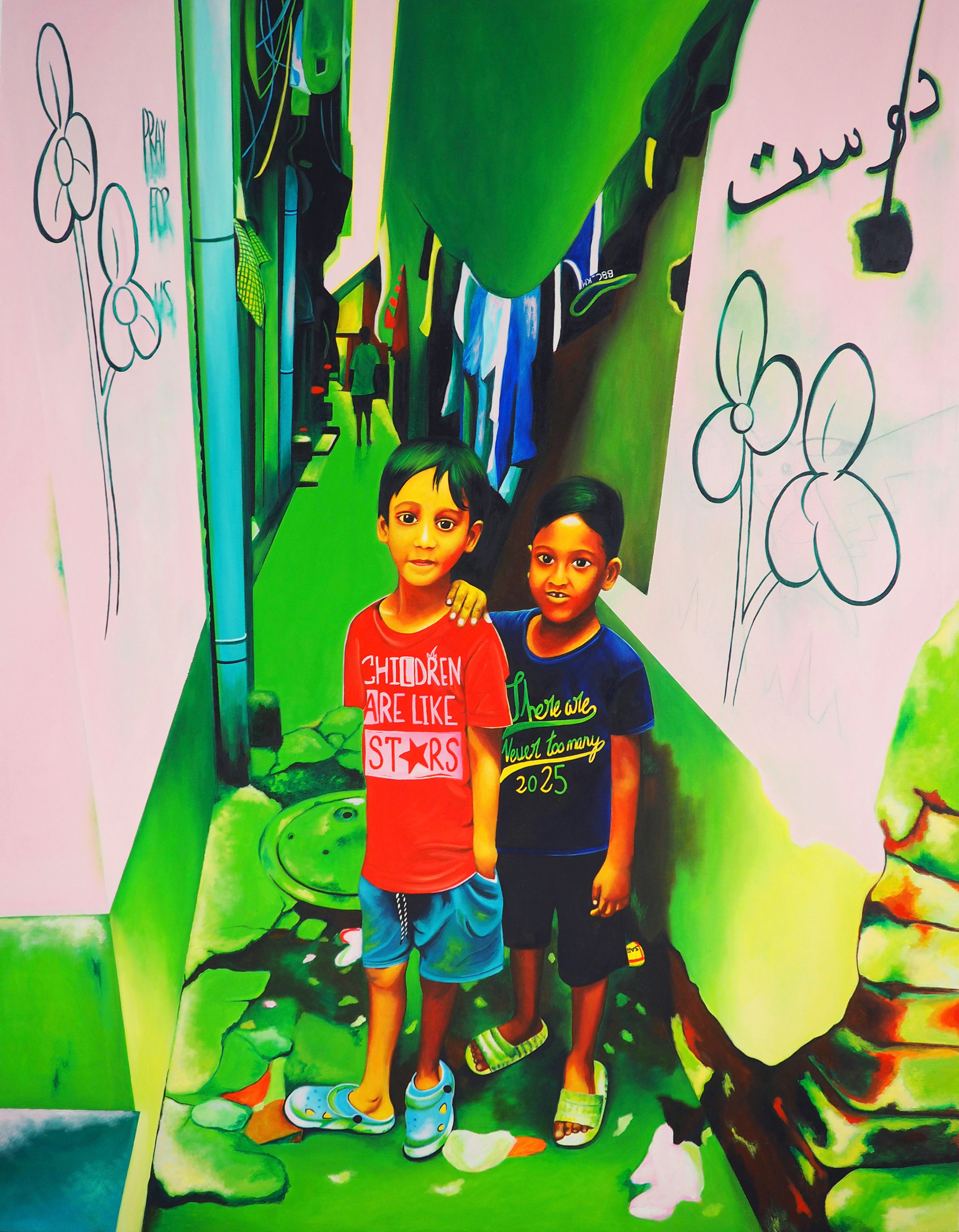 Acrílico, óleo y rotuladores sobre lienzo